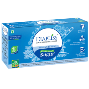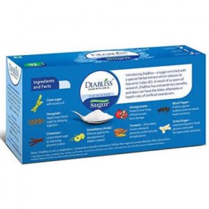Diabliss adds its innovative herbal sugar to the cookies to give them a rich and delicious flavour. The herbal cane sugar is the world’s first low glycemic index sweetener and is produced after cane sugar is refined with a blend of herbal ingredients like Fenugreek, Gooseberry, Pomegranate, Ginger, Cinnamon and Black pepper. This results in cane sugar getting a low glycemic index property hence making it fit for consumption by patients with diabetes and prediabetes. The cookies are a low glycemic index snack with a GI of less than 20.